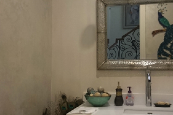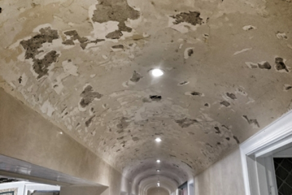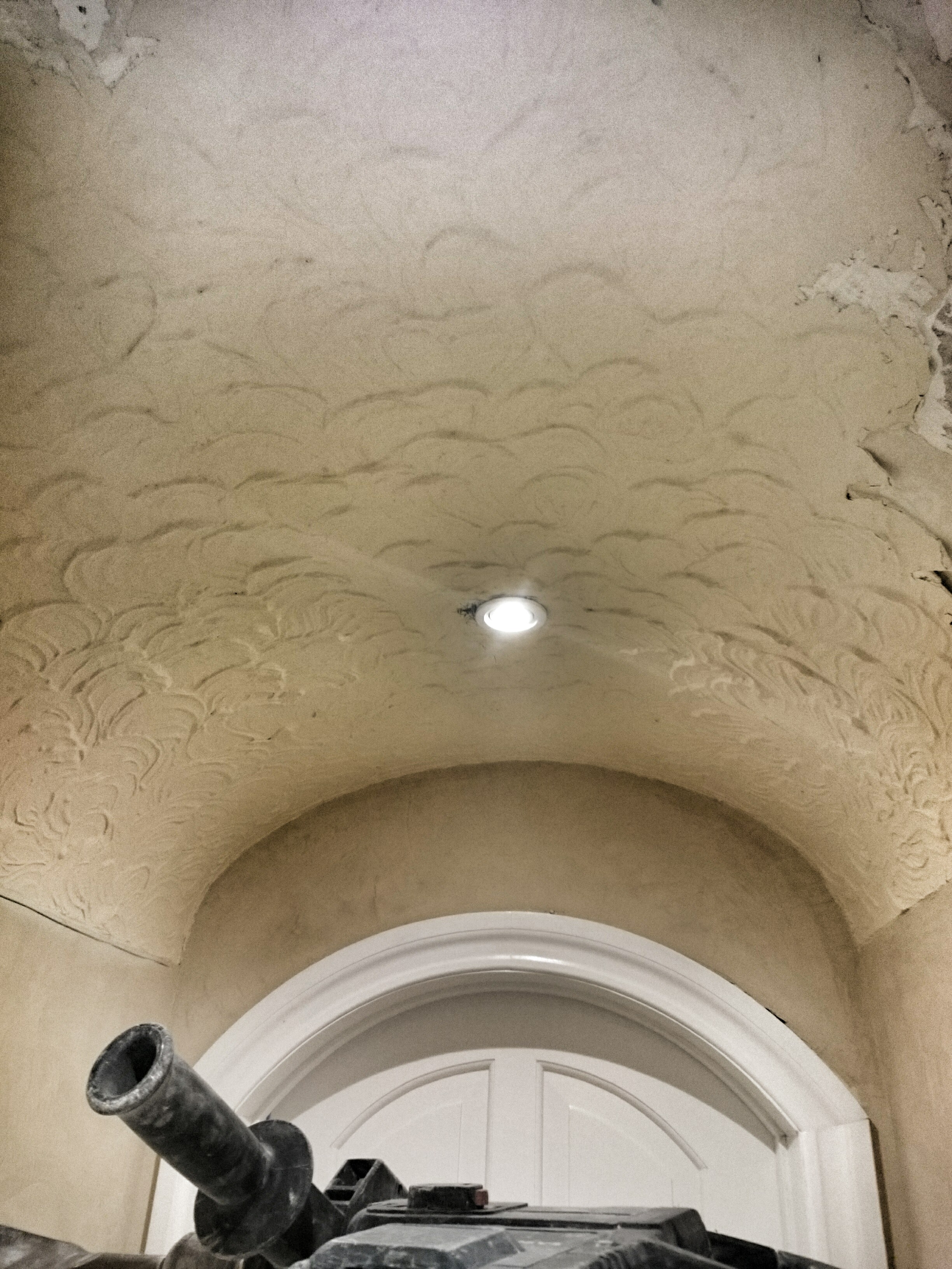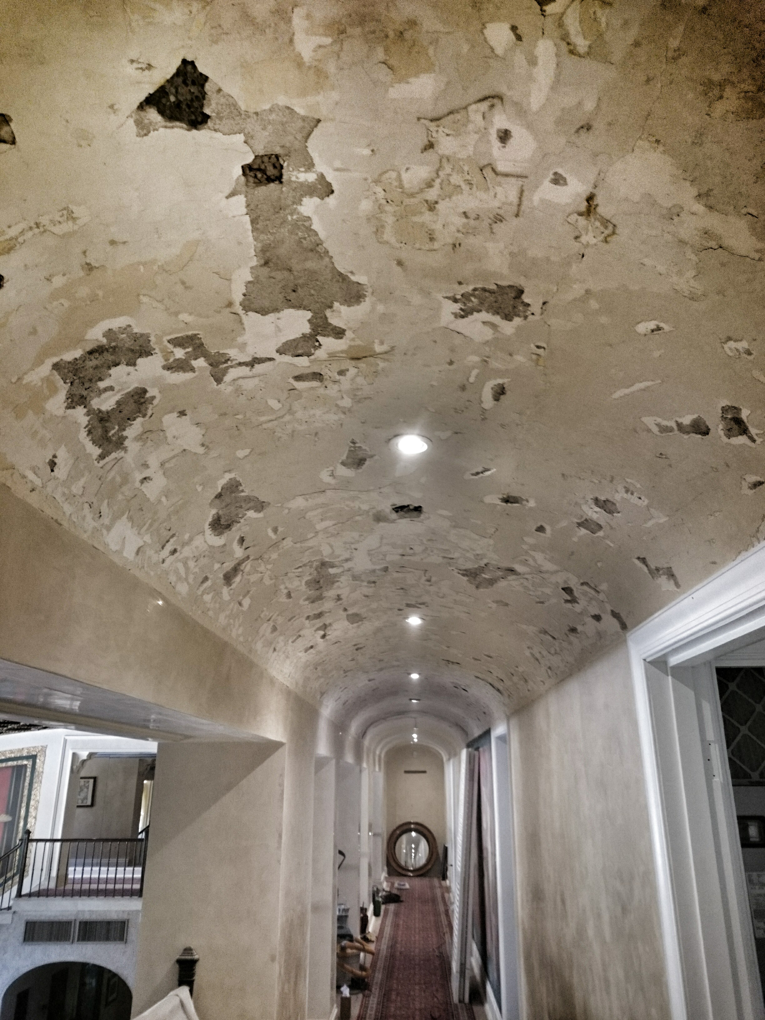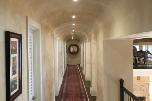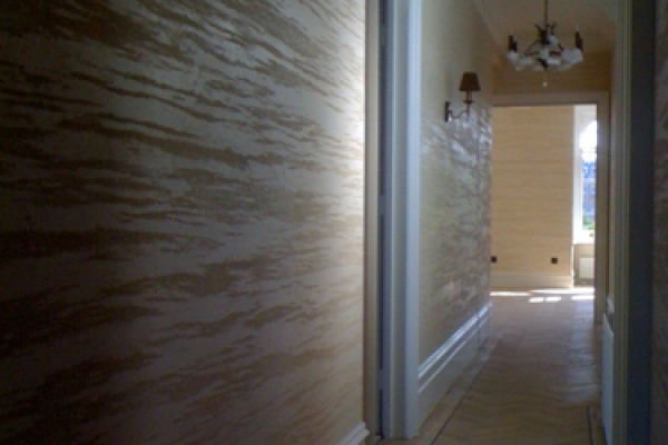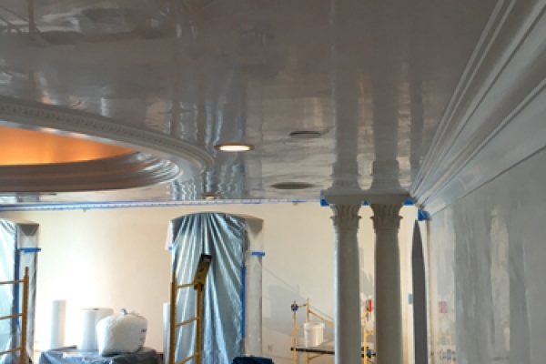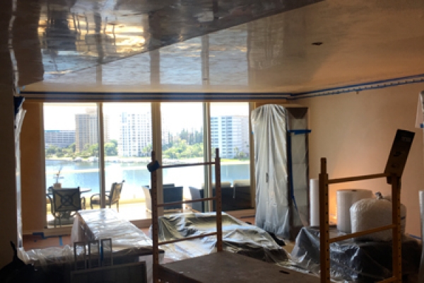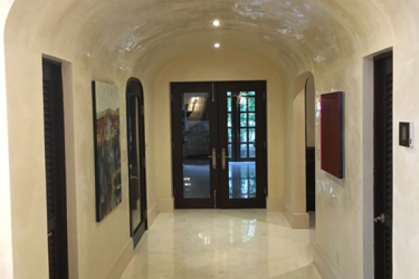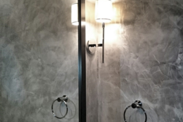 Venetian plaster is a wall and ceiling finish consisting of plaster mixed with marble dust, applied with a spatula or trowel in thin, multiple layers, which are then burnished to create a smooth surface