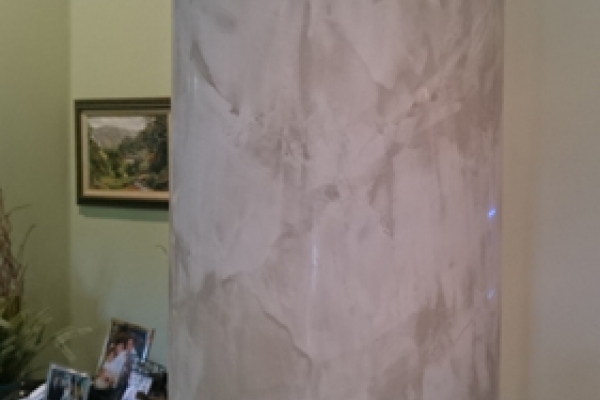 When applied correctly, Venetian plaster can be used to create a highly polished, rock-hard, marble-like finish. Venetian plaster is especially useful on surfaces where marble panels could not be installed easily, and on surfaces that would be too expensive to have carved from real marble such as columns, corbels, and curved walls.[4]